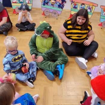 Przedszkolaki z grupy Słowiki 🐦 wraz z dziećmi z Ośrodek Szkolno-Wychowawczy im. Jana Pawła II w Jarosławiu wspólnie uczestniczyły w spotkaniu integracyjnym z okazji Międzynarodowego Dnia Postaci z Bajek. 🤴🧝‍♀️👑🤴🧌🐉 Była to okazja do kształtowania poczucia tolerancji, wzajemnej akceptacji ♥️🤗 oraz zwrócenie uwagi na rolę wychowawczą i edukacyjną dobrych bajek,📖które uczą rozróżniania dobra od zła oraz prawidłowych postaw: koleżeństwa, chęci niesienia pomocy innym czy współczucia. Dziękujemy za odwiedziny i wspólną zabawę.👯‍♀️